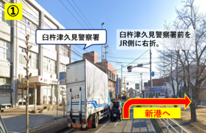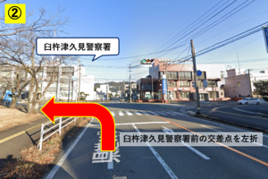 ②臼杵津久見警察署前の交差点を左折。