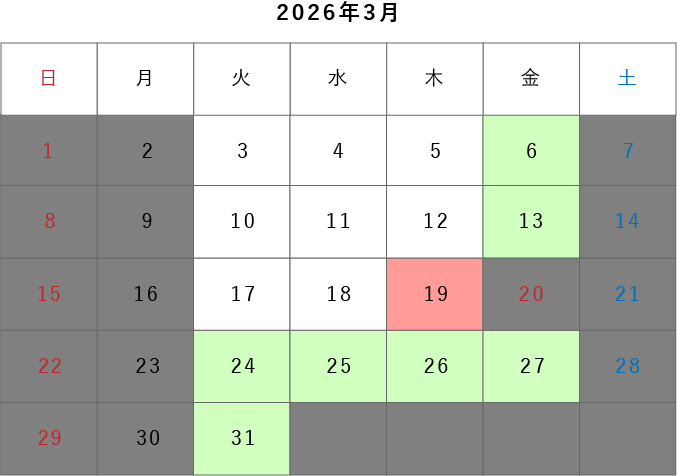 | 客室名 | C期間 | B期間 | A期間 | 定員 |