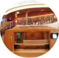 船内でご入浴。お食事ができますので、ごゆっくりおくつろぎ下さい。