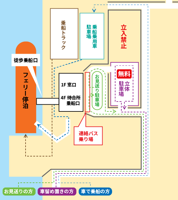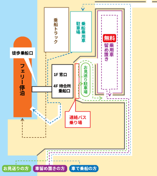 お車でのお見送りや、お車留め置きでご乗船される場合は無料立体駐車場をご利用ください。