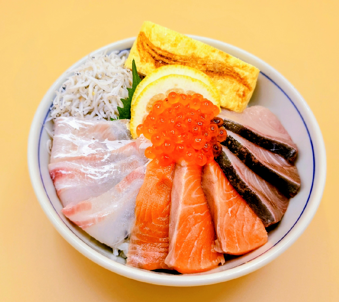 獲れたてのシラスを釜揚げにして、温泉卵と一緒に提供いたします。