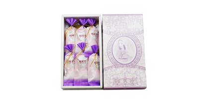 バイオレットリキュールで香り付けしたすみれ色の餡を、ミルクとバター風味のカステラ生地でくるみ、アルミホイルに包んで焼き上げました。